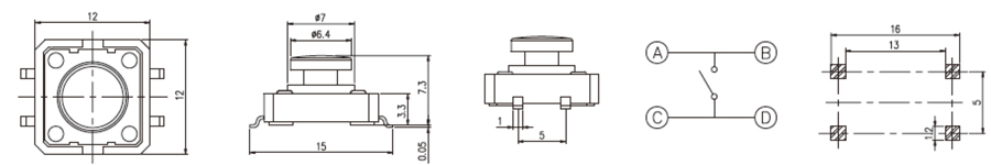 12x12mm輕觸開(kāi)關(guān) | RTSP-2 | 12VDC | 50mA | 3±1 N | 0.3mm | ≥100,000 CYCLES | 立即申請(qǐng) | 下載 |
